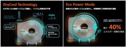 •密閉された液体ヘリウム冷却機構を生かし、平日夜間や休日などの非稼働時に冷凍機を間欠運転するEco Power Mode や、一定時間稼働がない場合に自動で省電力モードに移行するEco Gradient Mode 等の省エネ機能の組み合わせにより、電力の消費量を最大40% 低減する。